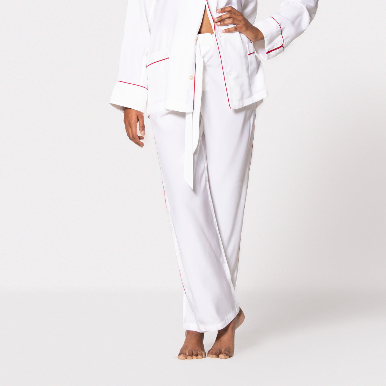 The Leisurewear Set, The Pant, and The Robe are to Dry Clean Only.